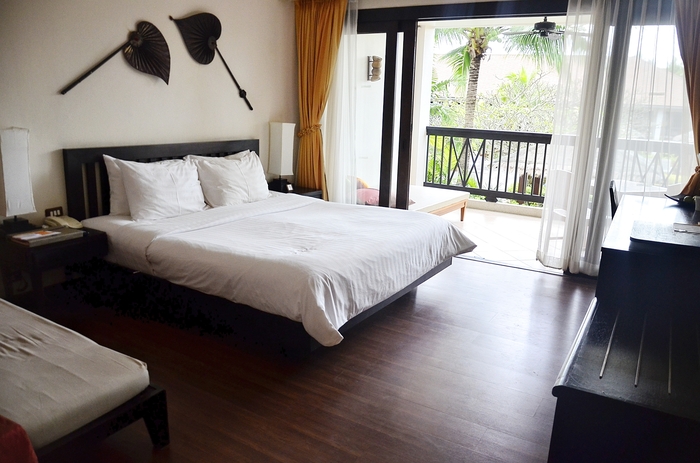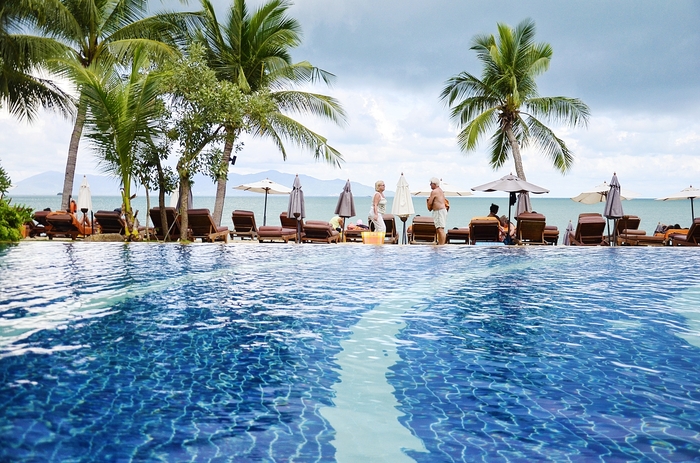 Решили мы шикануть, всё таки едем всего на несколько дней, и забронировали шикарную четверку на Самуи, со своим пляжем, зелёной территорией и богатыми завтраками. Ну не всё же нам экономить)