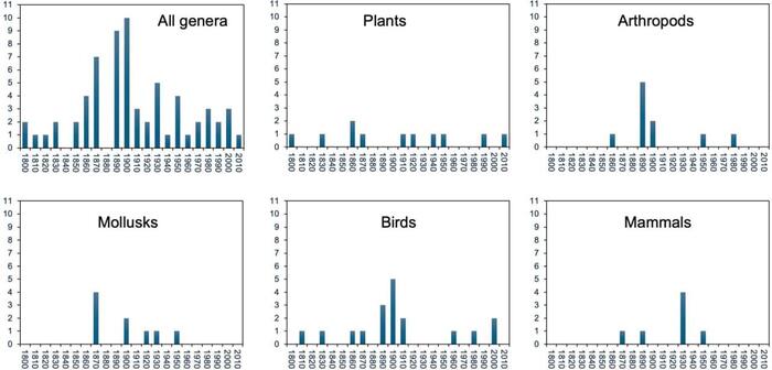 За последние 100 лет вымирание замедлилось, а не ускорилось. Пик пришёлся на XIX–XX века, когда исчезали уязвимые островные виды.