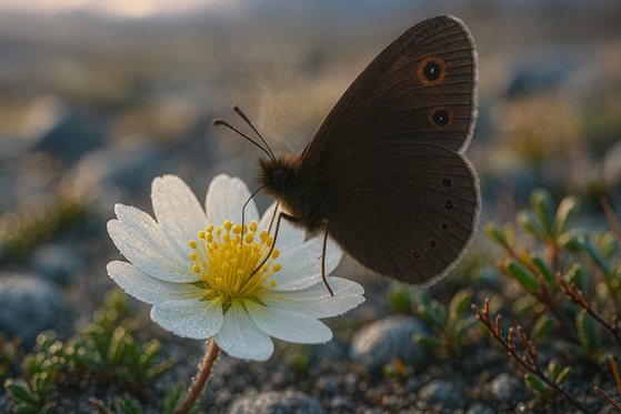 А пока где-то на склоне горы Полярного Урала белый цветок поворачивается вслед за полуночным солнцем. Внутри венчика температура поднимается до плюс пятнадцати градусов, пока снаружи воздух остывает до плюс семи. Шмель заползает внутрь и греется час, приводя в порядок окоченевшие мышцы. Уползает, унося пыльцу — два миллиона пыльцевых зёрен, которые, возможно, станут последним поколением дриады на этой вершине. Потому что согревать себя в мире, который становится слишком тёплым — стратегия без будущего.