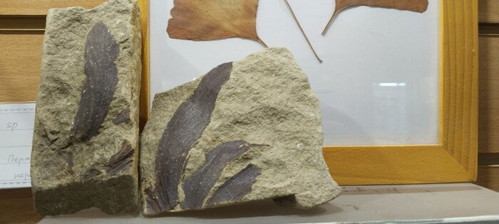 Ginkoites — прямые родственники гинкго. Данный образец родом из Пермского периода, найден юннатами в окрестностях деревни Мазуевки.