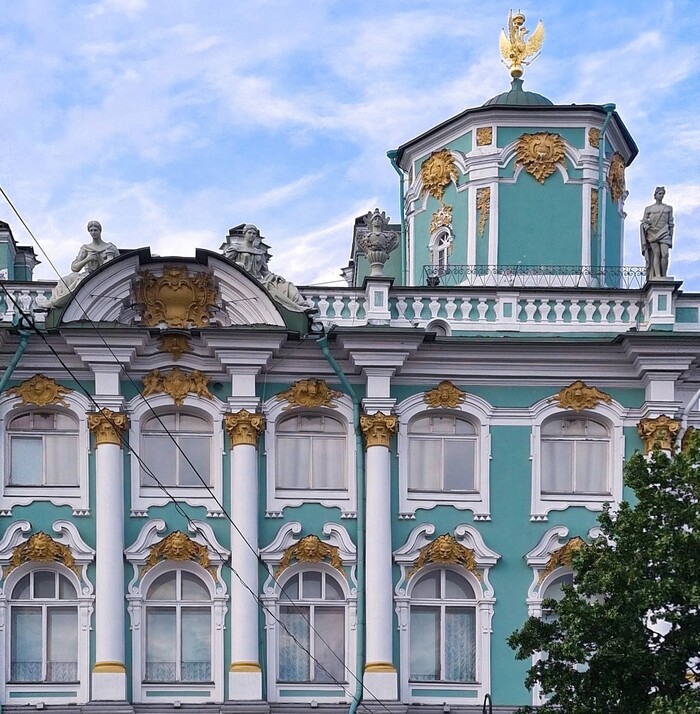 Мне кажется, что цвет морской волны Зимнему дворцу подходит идеально. В меру яркий, но позволяющий выделиться на фоне соседних зданий.💙