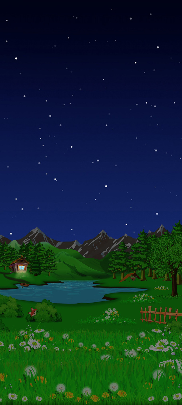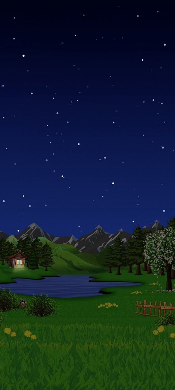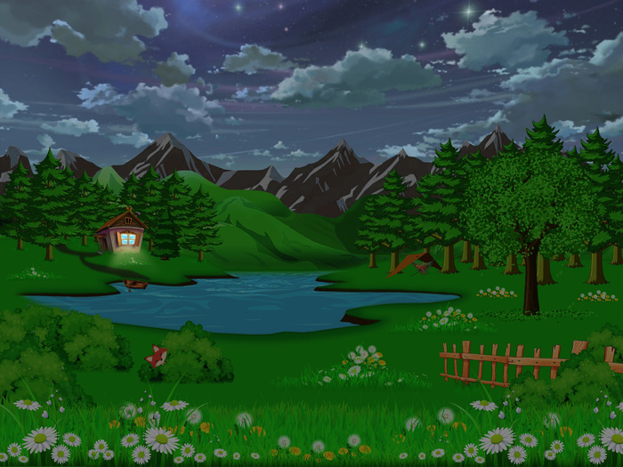 почти всю графику, ёлки, домик, забор, кусты и прочее взято из свободного доступа. Просто смысл рисовать тоже самое.
