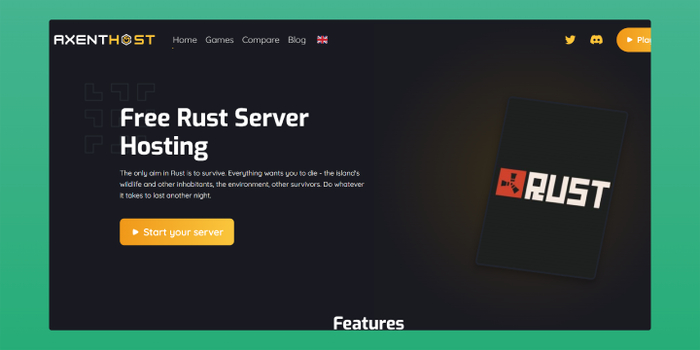 AxentHost— Полностью бесплатный, полноценный Раст-хостинг, но с рекламой на вашем сервере.