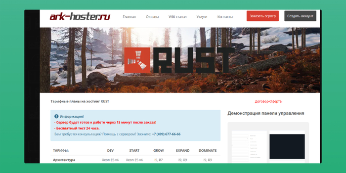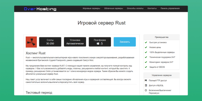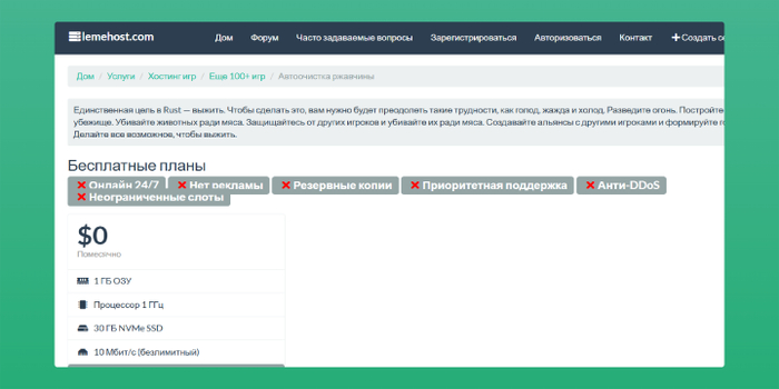 HostingRust— Хорошее соотношение цена/качество для небольших сообществ.