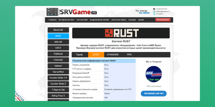 Srvgame работает с 2013 года и предлагает как VPS, так и выделенные серверы. Низкий пинг и FTP-доступ делают его удобным для администрирования, а техподдержка оперативно решает любые вопросы.