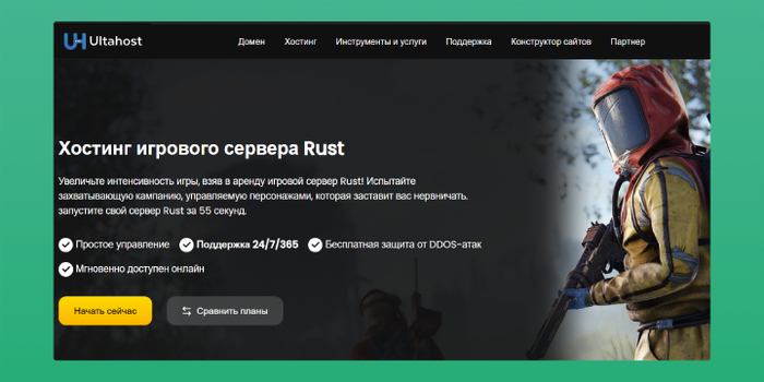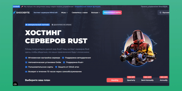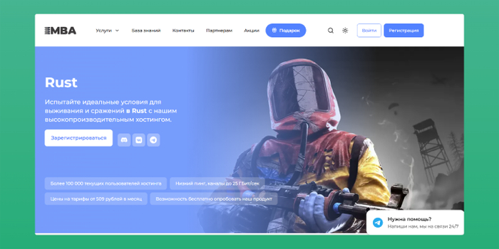 HostingRust — это провайдер, который фокусируется исключительно на игровых серверах, включая Rust. Его ключевое преимущество — расположение дата-центров в Москве, что обеспечивает низкий пинг для игроков из СНГ. Серверы работают на процессорах Intel Xeon и SSD-дисках, а система защиты AntiDDoS Game сводит к минимуму риски атак.