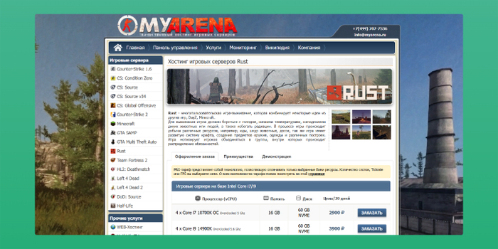 1. MyArena — хостинг серверов Раст для больших комьюнити