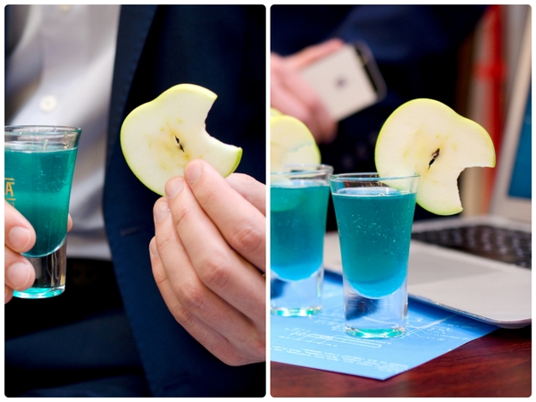 E: Мы сделаем "морской" коктейль для людей которым нужно немного отдыха. Маленький шот внутри стакана откроется как ракушка, когда ты будешь пить коктейль. Вы готовы к морскому путешествию?