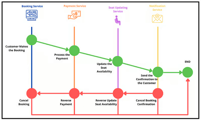 Saga используется для управления распределенными транзакциями в микросервисной архитектуре. Длительная бизнес-операция разбивается на серию меньших, локальных транзакций. Каждый сервис выполняет свою часть транзакции и публикует событие, которое запускает следующий шаг. Если что-то идет не так, выполняются компенсирующие действия для отмены изменений.