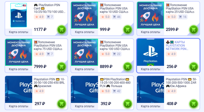 Один из вариантов пополнения баланса - покупка карт оплаты. После активации карты, на аккаунт PlayStation зачислится указанная на ней сумма. Их также можно приобрести на торговой площадке GGSel.