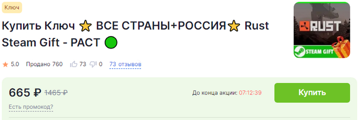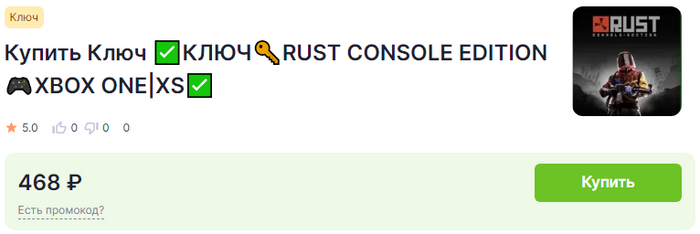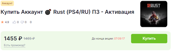 Переходим в категорию Rust и выбираем подходящий товар. Также, как и в предыдущем способе, смотрим на его критерии, внимательно читаем описание и оплачиваем.