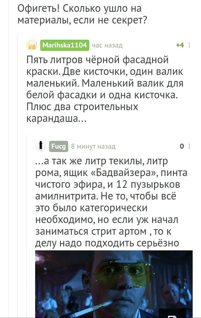 В общем и целом, если надумаете читать ЭТО, я вас предупредил. Мне книга понравилась: она ГРЯЗНАЯ, необычная, персонажи творят аморальные вещи, но в этом и весь прикол. «Страх и отвращение в Лас-Вегасе» — это один из самых эпатажных романов, которые я когда-либо читал. Кстати, сам Томпсон называл это не романом, а достоверной историей его реальной поездки в Лас-Вегас со своим другом-адвокатом Оскаром Акостой, вот так вот)