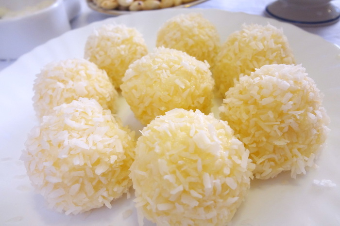 Скатываем круглый шарик и обваливаем со всех сторон в кокосовой стружке. Когда все конфеты будут готовы, снова отправляем их в холод на один час.