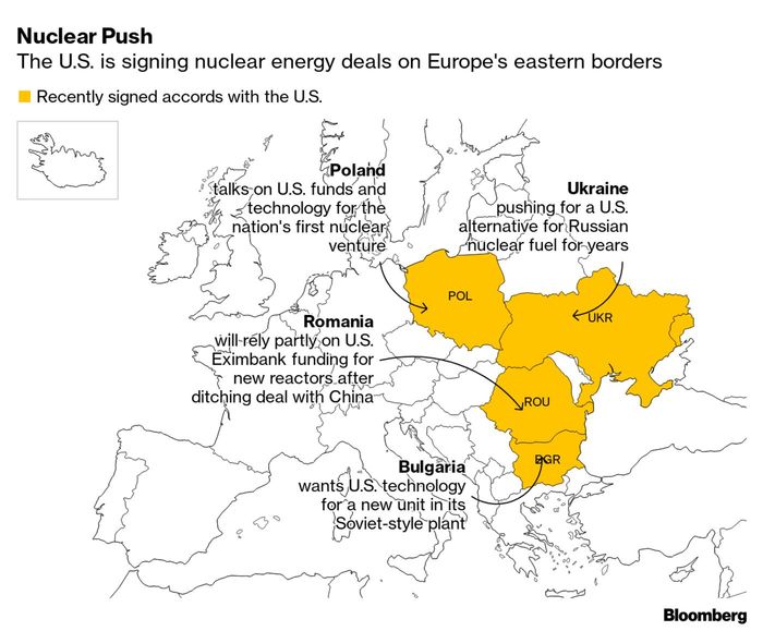 За несколько недель США подписали меморандум с Румынией о финансировании возведения нового реактора и другие соглашения с Польшей, а также Болгарией, которая планирует возродить старый проект строительства атомного реактора.
