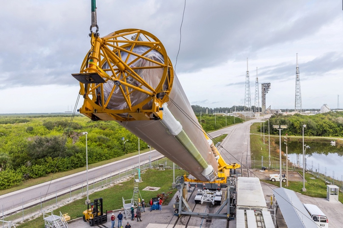 Пятиметровый обтекатель полезной нагрузки изготовлен швейцарской компанией RUAG и аналогичен тому, который RUAG разработал для европейской ракеты Ariane 5. Обтекатель доступен в коротких, средних и длинных вариантах, а в пятницу будет использоваться короткая версия. В пятиметровом обтекателе как полезная нагрузка, так и верхняя ступень Centaur герметизированы, при этом обтекатель разделен на нижнюю половину, которая герметизирует Centaur, и верхнюю половину для полезной нагрузки во время предпусковых операций. Они прикрепляются перед запуском, и когда обтекатель отделяется в полете, он отделяется вдоль.
