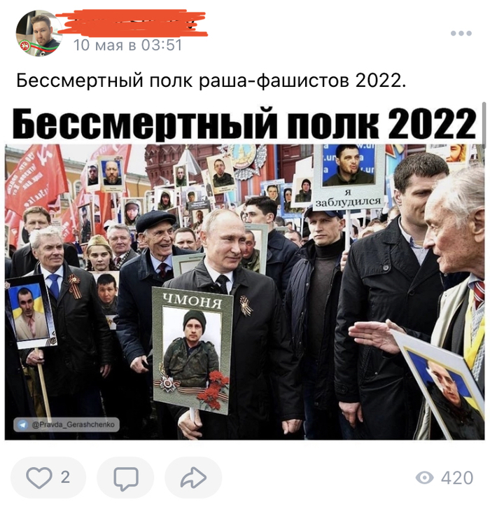 Пусть животные, которые верят в этих мерзавцев, будут уничтожены. Когда победил Гитлер, мы были бы немецкий рабами. Горжусь, что наши отцы не предали, спасибо нашим ветеранам