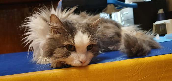 А потом я их стала уже ближе подпускать. Когда я дома, я открываю все двери и смотрю, как они контактируют. Также важно не подпускать их близко мордочкой к мордочке, потому что это влечёт большой стресс. Питомец сазу начинает уходить в себя, и адаптация может занять ещё больше времени. Также помогают успокаивающие спреи. Они очень действенные и правда помогали Ушане побороть стресс. Главное от хозяев - это терпение. Потому что бывает, что и год может адаптироваться кошка со вторым питомцем.