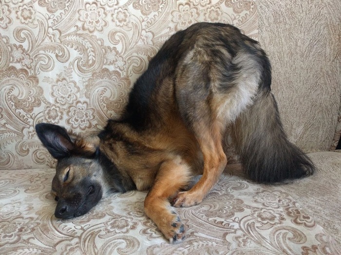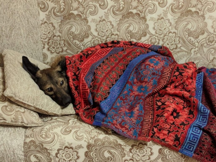 А: Ушаня спокойная. Вот этим мне и нравятся возрастные животные. Она подходит сама, просит общения, ласки. Ну и так же я иногда подхожу попросить общения и ласки. Рузик тоже очень спокойный, хотя он даже более общительный, чем Ушаня. Он постоянно ходит по пятам, общается. Смотрит, что я делаю. Очень любит наблюдать из-за угла.