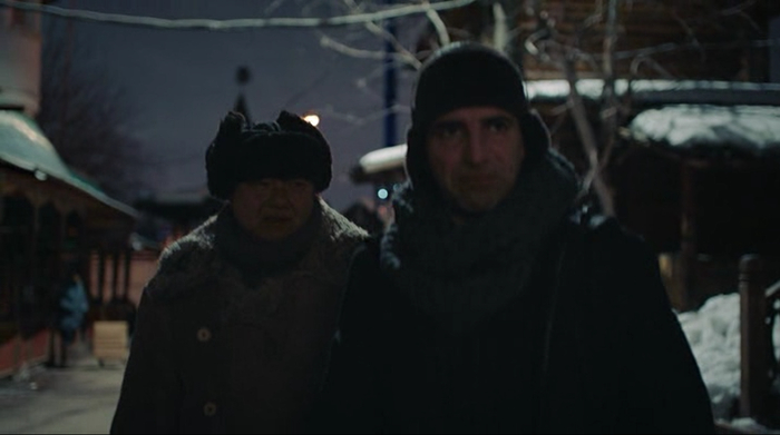 Далее нам показывают, как старики над могилой женщины читают молитву, ну а злобные русские по дороге ведут арестованного муллу. В следующем же кадре нам показывают, как два злобных упыря из НКВД ведут по дороге Райхан, наставив на неё винтовки.