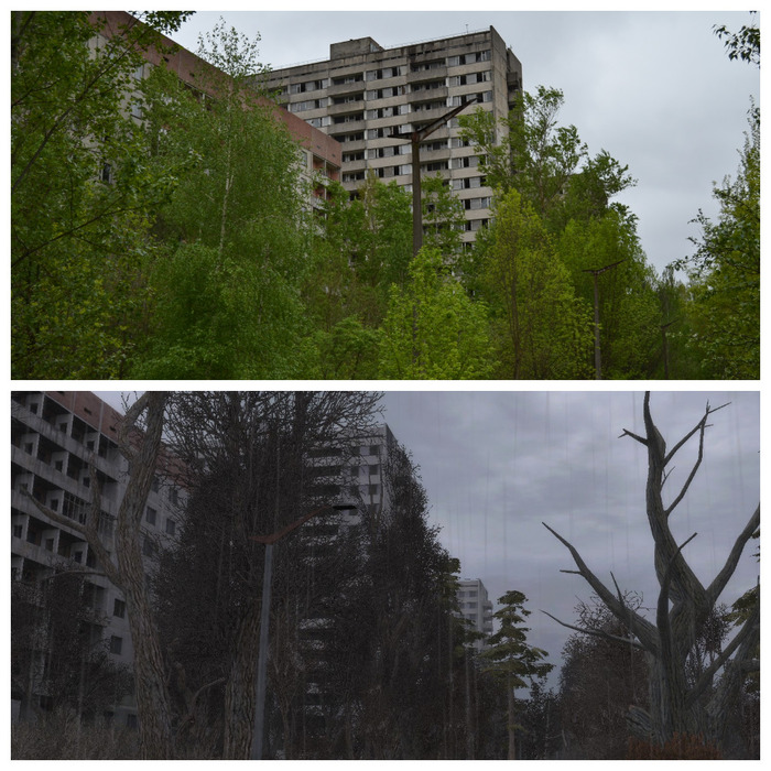 Встретить вооружённую банду или полицаев в хреновом настроении в Припяти вполне реально, поэтому не каждый вернулся оттуда живым. Фон в городе в целом уже удовлетворительный, но есть места выпадения тех же тяжёлых радионуклидов, которые когда-то были топливом. Однако местами это может измениться как в лучшую так и в худшую сторону. Например, содержание всякой мейнстримной хуни типа радиостронция и радиоцезия сокращается наполовину раз в 30 с чем-то лет (это величина конкретно для данных радионуклидов, у каждого она разная, вплоть до десятков тысяч лет), что следует из понятия периода полураспада, и в тех местах, где выпадали преимущественно только они, сейчас уже вполне средний фон, как на естественных некультивированных территориях, которые только посыпает радиоактивной пылью от ядерных испытаний из атмосферы. Однако есть некоторые говнистые радионуклиды, которые после полураспада переходят в более активные и начинают фонить сильнее. Например, сейчас в Беларуси бьют тревогу из-за того, что выпавший на её территории плутоний-241 по мере циклов полураспада всё больше и больше трансформируется в америций-241, а тот фонит яябу. Лет через сорок в этих плутониевых радиоактивных аномалиях фон заметно поднимется.