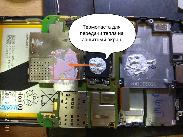 Кстати на последнем фото через камеру только что сделанного телефона лежит второй такой же утопленный реф без сети, но в процессе ремонта у меня оторвался с платы коннектор тачскрина (он просто сгнил. Но уже сделал) и изображение криво работает(опять реболить проц за свой счёт). Причём тот телефон работает с родным китайским дисплеем, но с другими, даже оригиналами не выводит изображение вообще, хотя подсветка есть. А всего то сделал реболл модема в другом конце платы...