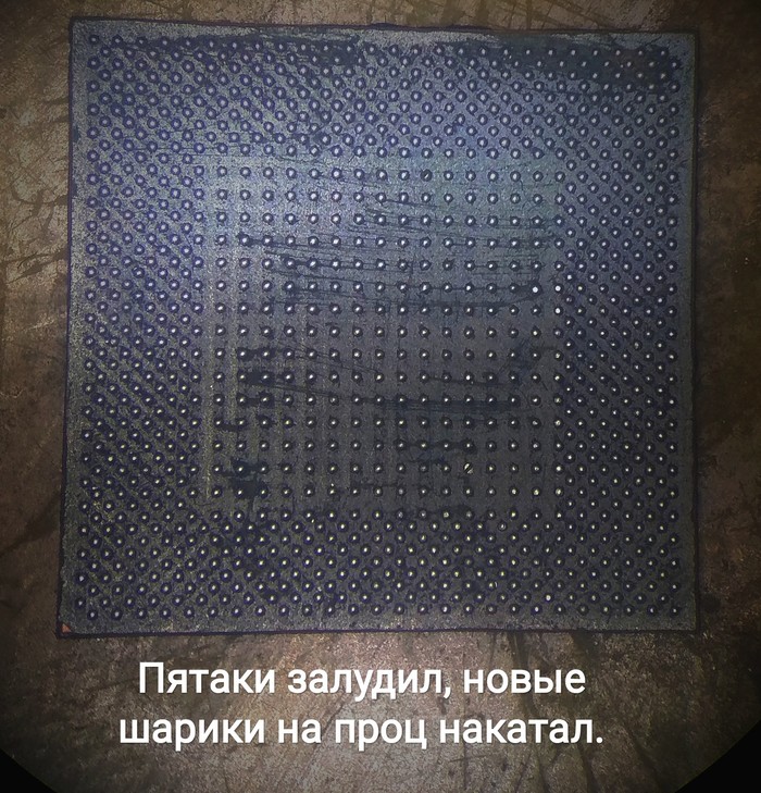 Нижний подогрев на 300 градусов без участия паяльного фена и паста сама расплавилась на процессоре. Шарики стали ровнее, да и процессор не получает локальный прогрев а нагревается равномерно и полностью. Трафарет не выгибает при этом.Но сука 5 тысяч денег за китайские трафареты не дают покоя.