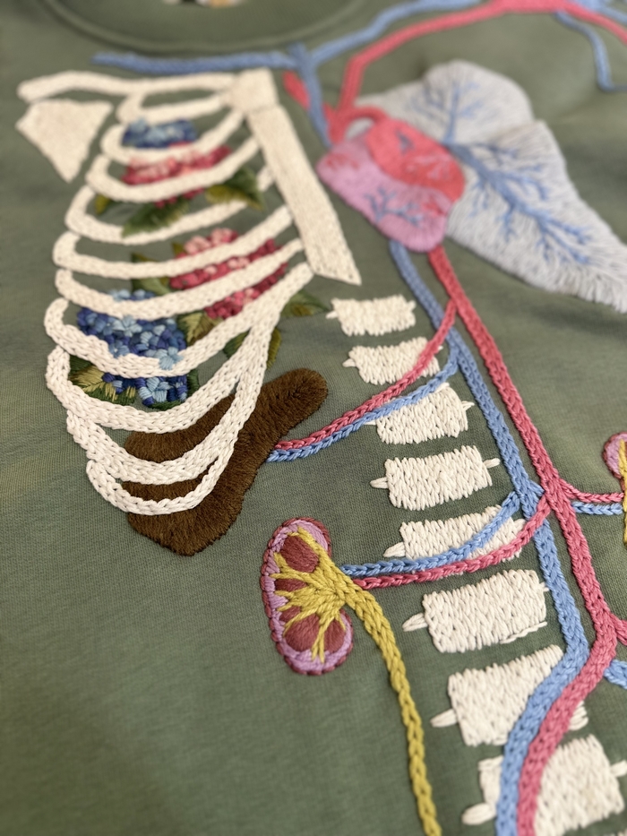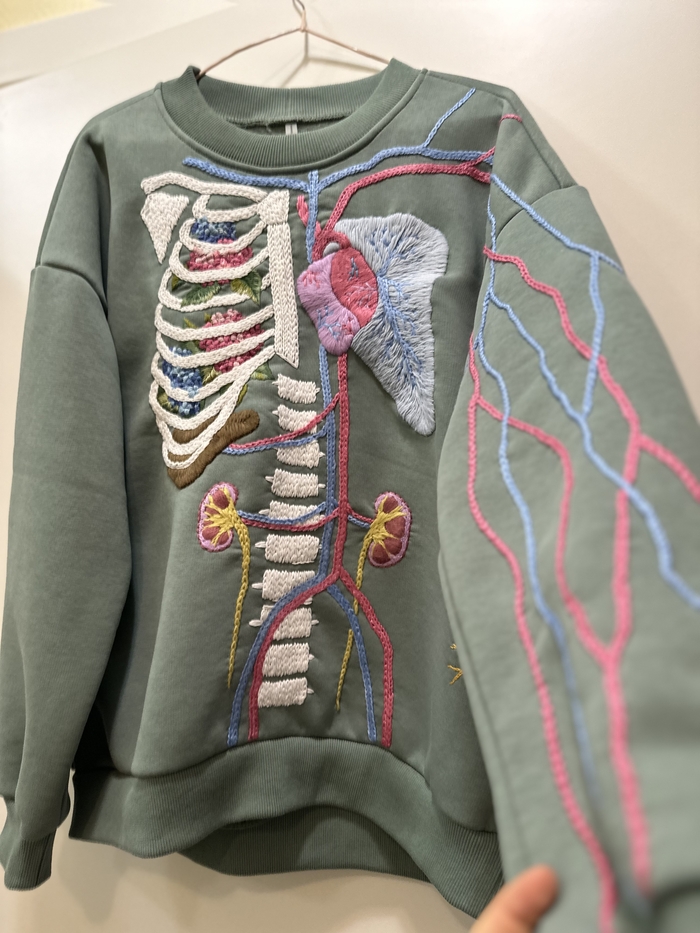 В следующий раз хочу попробовать провязать крючком ребра сверху вышивки. Правда, это лучше делать действительно на свитере, а не свитшоте.