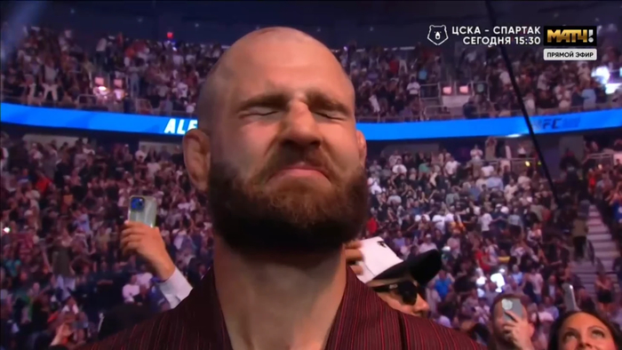 Анкалаев появился в капюшоне и без эмоций – под громкий гул арены. До боя он объяснял, что не переживает из-за свиста: фанаты его не любят, ведь он бьет их любимцев, мотивируя быстрее нокаутировать Перейру.