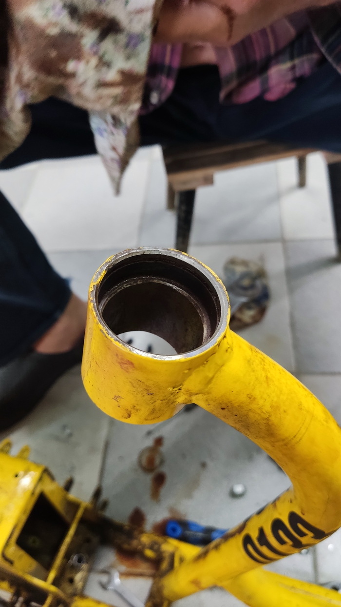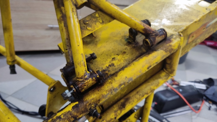 Перетряхнуть пришлось вообще всё. Сделано было в лучших традициях "и так сойдёт". Думаю, фото довольно наглядно иллюстрирует суть. Резьба попадала на втулки на уши крепления, все это с люфтами, без смазки - кошмар.