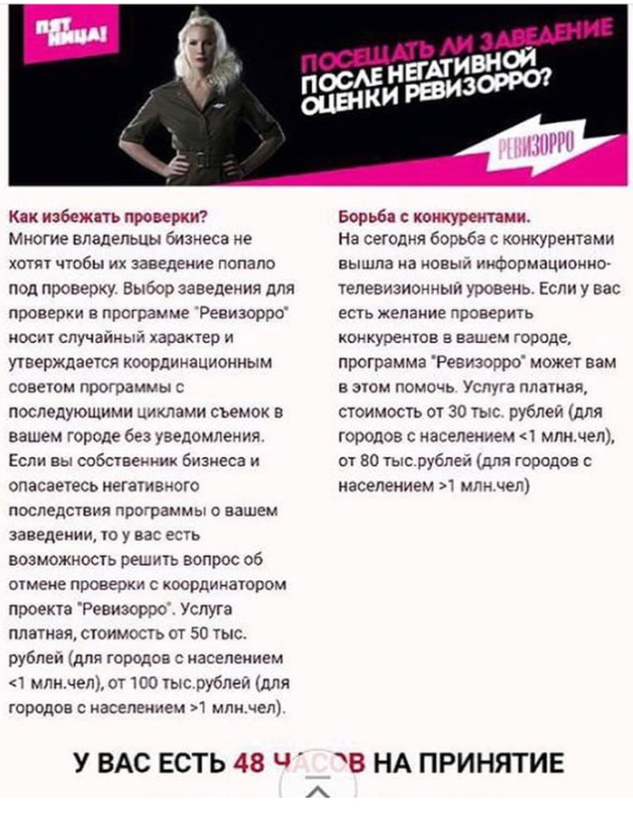 Внимание! Пришло такое письмо с официальной Почты программы Ревизорро на канале Пятница. У этих людей в заведении уже была проверка и вот поступило предложение уже с расценками. Новый способ заработка
