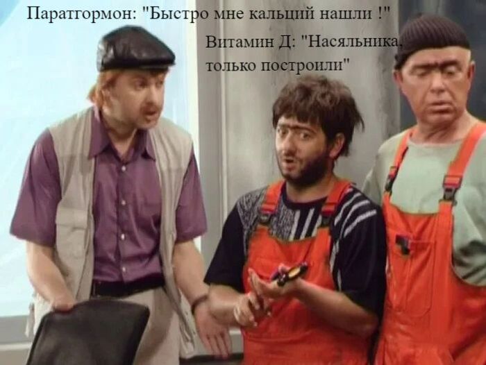 Как должно происходить в норме при слаженной работе всех систем - концентрация кальция падает, паратгормон просыпается, “бьет по шапке” витамин Д, концентрация кальция увеличивается за счет усиленного всасывания из кишечника. Если, напротив, кальция много, паратгормон расслабляется, витамин Д почти не образуется в активной форме и все остальные процессы идут обратным шагом уменьшая содержание кальция.