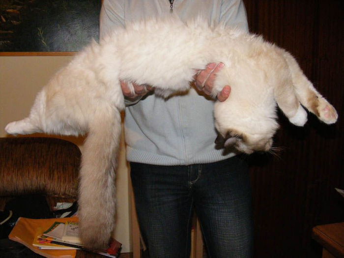 Держишь такую кошку на руках, а она как тряпочка! Как-то немного странно и очень боязно за кошку. Нормальная кошка, если ее, например, обижают или нечаянно причиняют дискомфорт, сообщает об этом посредством когтей, зубов или попыток вырваться. А рэгдолл все терпит.