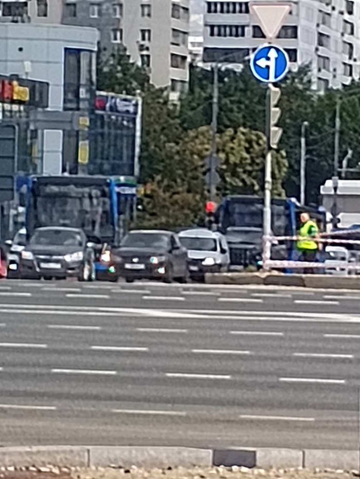Еду дальше, там небольшой совсем перекресток, и вновь та же картина - регулировщики. Вроде двое.