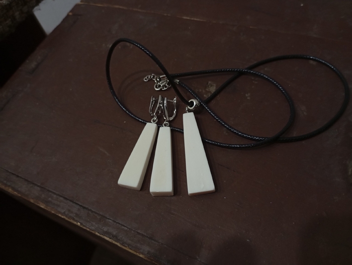 С идеей сделать такие серьги ко мне обратилась землячка, и первые такие изделия были сделаны мной примерно два года назад из неотбеленной кости КРС (цвет неотбеленной кости примерно ближе к желтому, иногда бежевому).