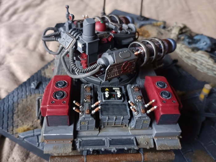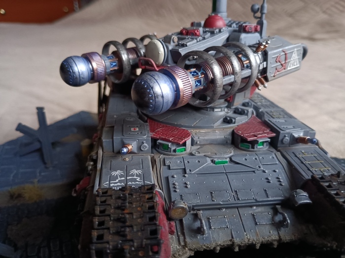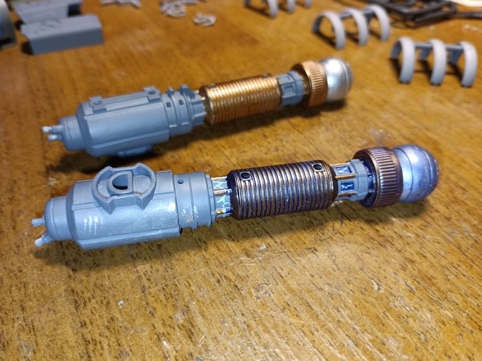 Еще попытался по мере сил показать,что пушки только после выстрела и энергия в них еще плещется.потому и цвет с синевой,а не обычная медь,как на мелких катушках.
