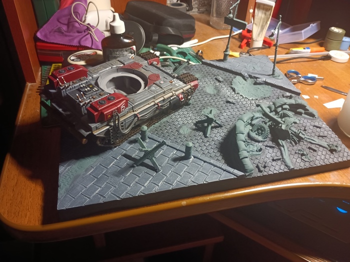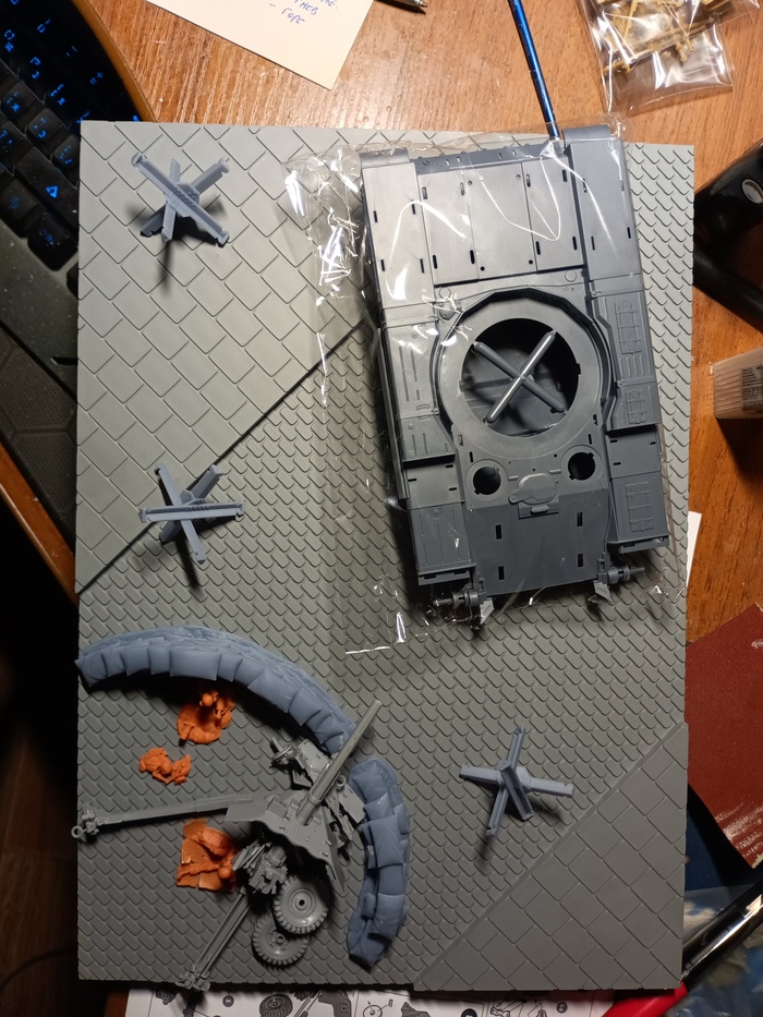 смонтировал на диораме все запчасти и надо уже танком заниматься.часть запчастей у него от апокалипсиса(катки и гусли,как минимум).