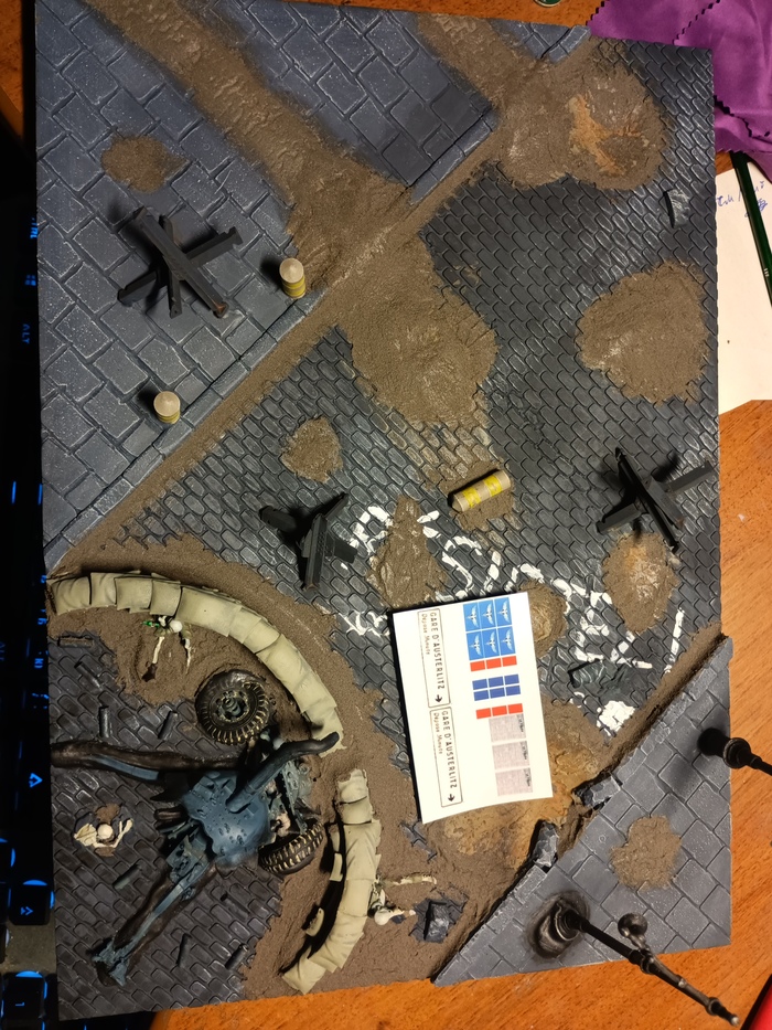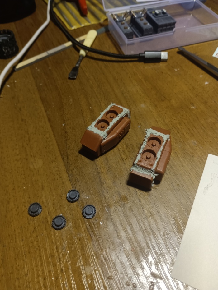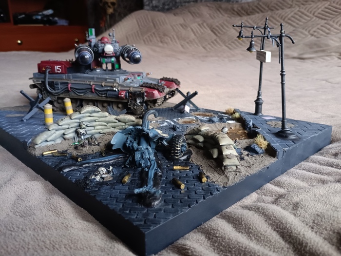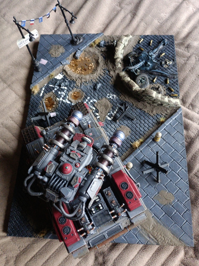 Зажигалкой наделал выемок,под воронки и заляпал шпатлевкой.подпилил бормашинкой брусчатку(чтоб ровной не казалась.тут же пригодились кирпичи гипсовые(коробку купил хз зачем).