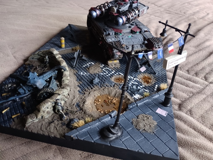 Военные узкие парижские улицы,и последствия удара тесла пушек.просто скелеты изображать неинтересно-придадим им пушку.ее роль играет,внезапно,древняя английская шестифунтовка,но других дешевых забугорных под расплавку не нашел,а зисы брать-палевно.