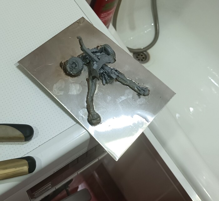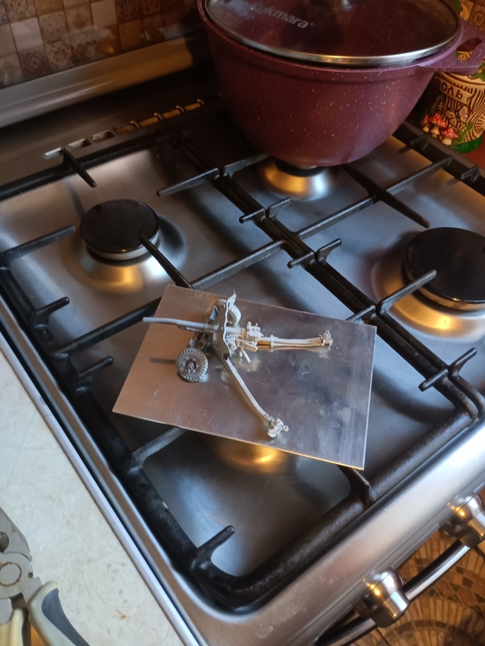 Для натуральности плавлю пушку.на плите.вроде натурально получилось.