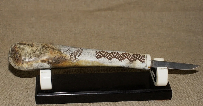Отдельной строкой стоят ножи с рукояткой из бакулюма (хрена моржового) - косточки в основании пениса моржей и иных крупных млекопитающих...