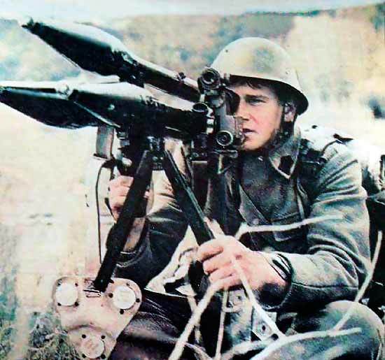Солдаты Рабочей милиции с автоматами ППШ в руках, 1972 год.