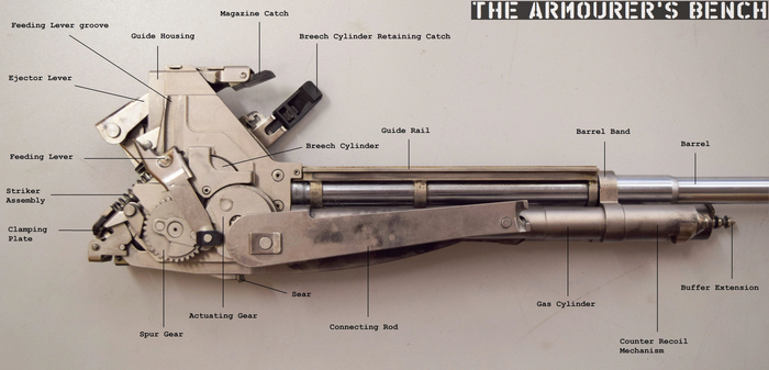 Не берусь исчерпывающее описать происходящее внутри корпуса во время выстрела. Даже видео разборки G11 не дает полного представления о работе механизмов.