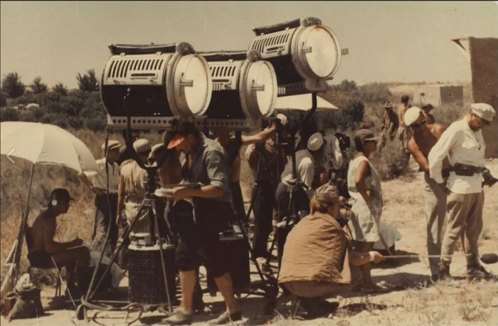 Вот фото — да, даже в условиях пустынного солнца ставили свет, чтобы получить нужный световой рисунок на лице героя: