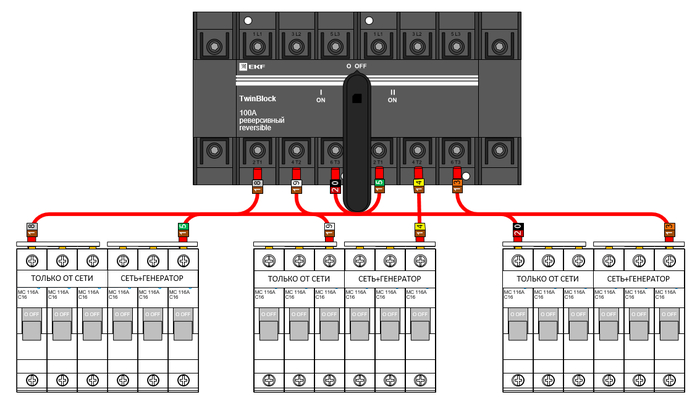 Следующим шагом определимся, как переходить на резерв. Рассмотрим классический вариант ручного переключения, с помощью так называемого "Реверсивного рубильника"