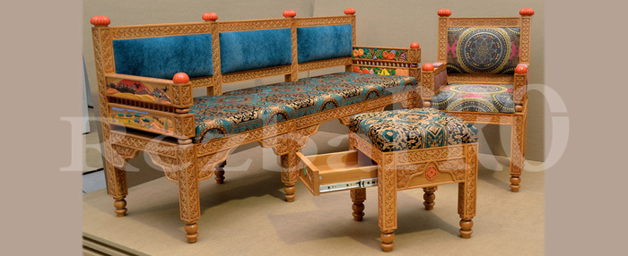 В результате получился вот такой оригинальный комплект мягкой мебели в восточном стиле.