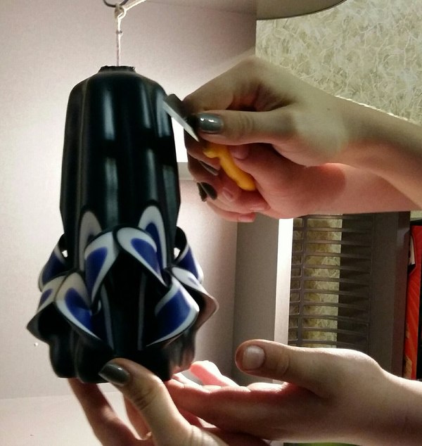 Теперь пора приступать к резке.Только очень быстро , ведь парафин застывает, и потом резать свечу невозможно. Всего 15 мин)