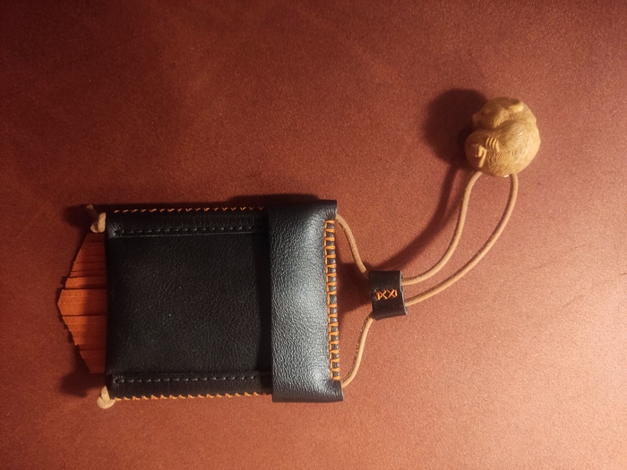 Сваял из кожи чехол для карт. И совместил всё вместе.