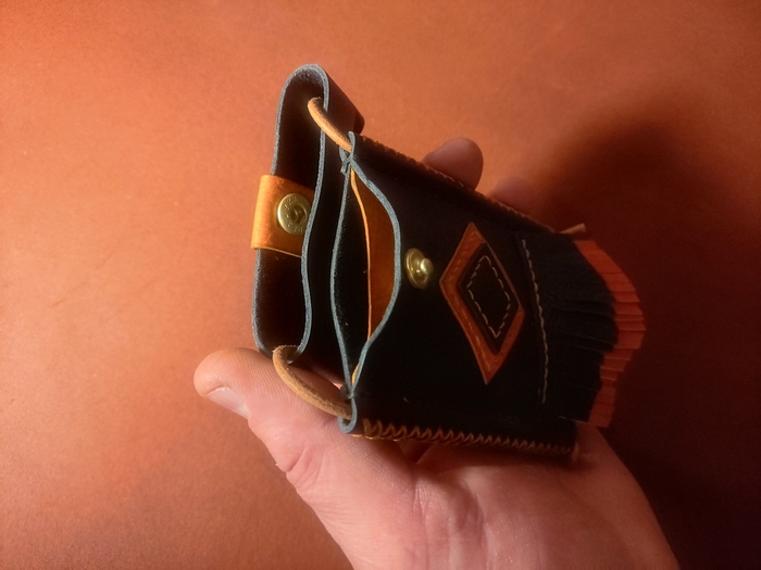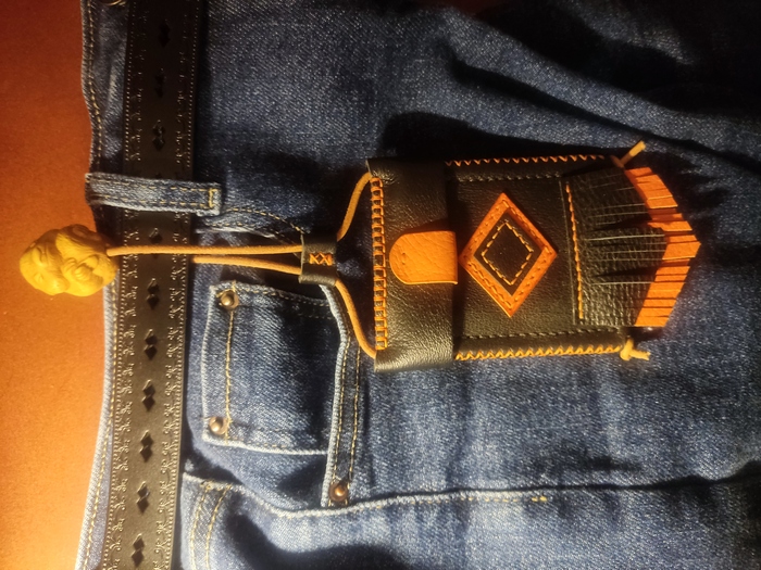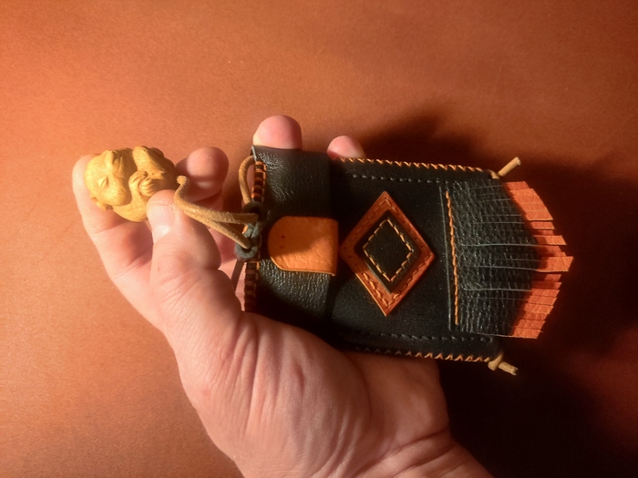 Скоро племяха приедет. Захотелось сшить ей подарочек. При этом, не простой, с изюминкой, который совместит два моих увлечения: резьбу и кожу. Начал изучать интеренет, думать, рисовать. И придумал. Вернее, японцы придумали, я чуть апгрейдил.