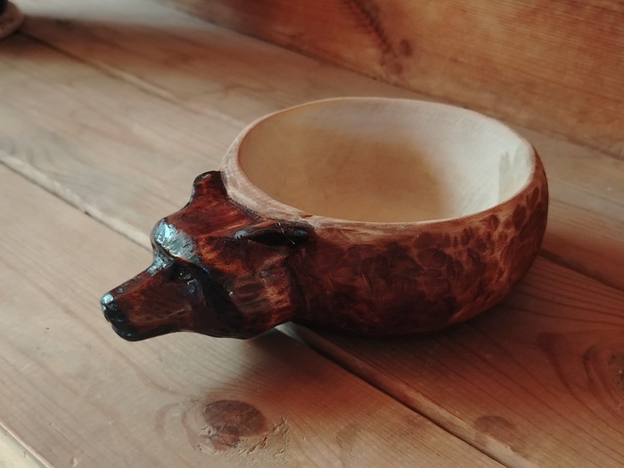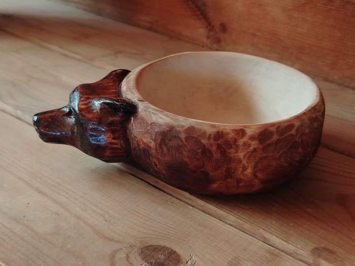 Вот Кипарисовую жабку вырезал. Первый раз резал Кипарис, хорошее дерево, приятное в работе. Даже куча мелких дефектов не помеха. Но по торцам древесина сосёт... всё сосёт, вот УФ смолу всосало по верху трещины, которую заливал на боку. Получилась клякса.