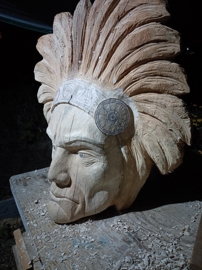 Весьма тяжёлый, сделан из целого куска дерева упавшего на дорогу.